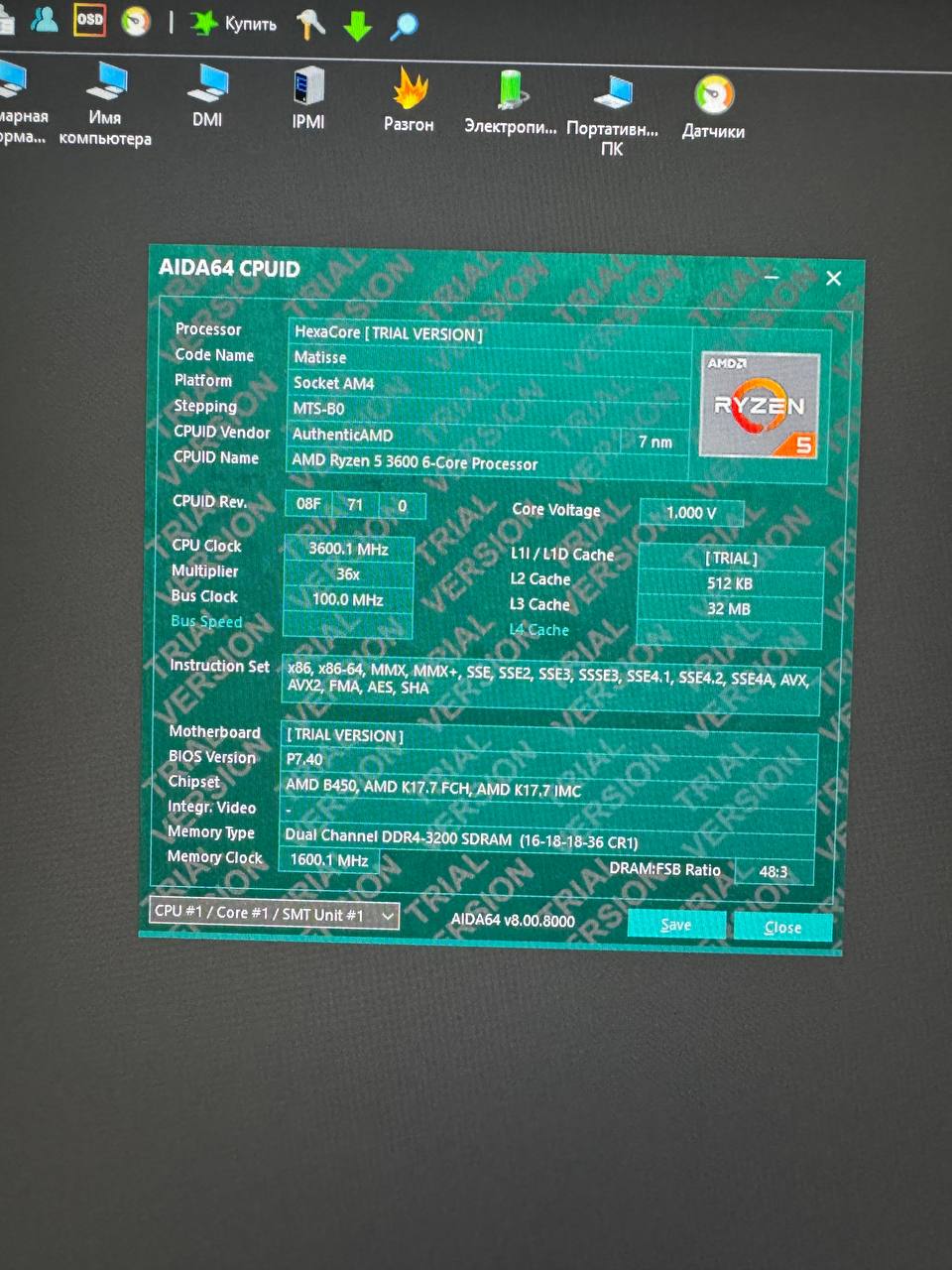 • Процесор: AMD Ryzen 5 3600