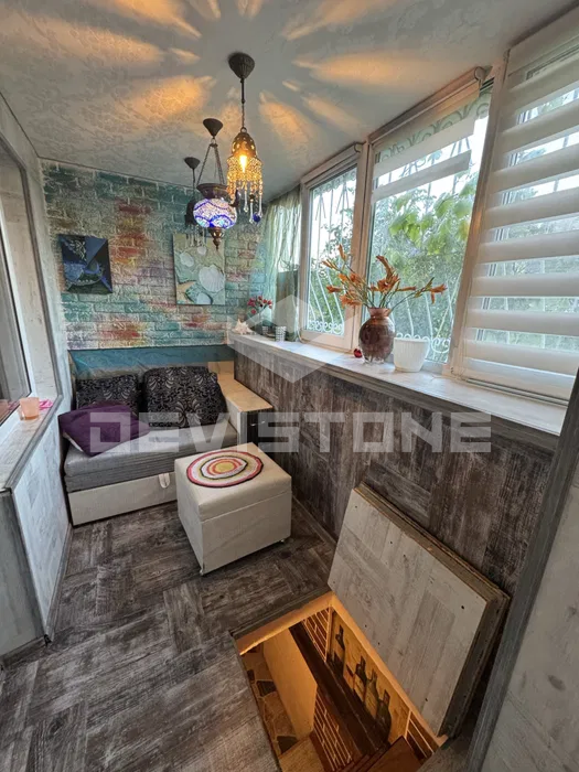 -Загальна кімната має вихід на просторий балкон, оздоблена диваном, кондиціонером.